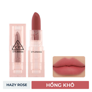 Son Thỏi 3CE Vỏ Trong Màu Lì Hazy Rose - Hồng Khô 3.5g