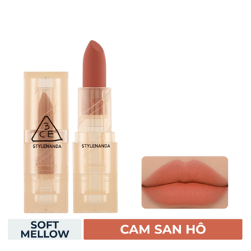 Son Thỏi 3CE Soft Matte Lipstick (Warm & Cool Edition) Vỏ Trong Màu Lì Soft Mellow - Cam San Hô 3.5g hiện đã có tại .
