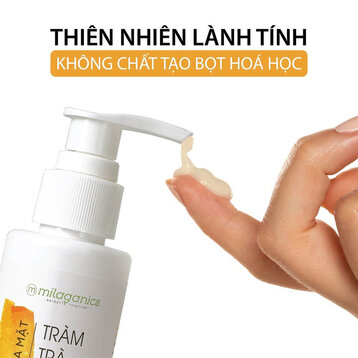 Sữa Rửa Mặt Tràm Trà Nano Nghệ Ngừa Mụn là sản phẩm sữa rửa mặt đến từ thương hiệu mỹ phẩm thiên nhiên Milaganics của Việt Nam, với sự kết hợp của 2 hoạt chất Cocamidopropyl betaine, Salicylic Acid cùng tinh dầu tràm trà nguyên chất, chiết xuất nano nghệ theo tỉ lệ đặc biệt dành riêng cho làn da mụn nhạy cảm sẽ loại bỏ hoàn toàn bụi bẩn, bã nhờn một cách dịu nhẹ, giúp se khít lỗ chân lông và ngăn chặn sớm sự hình thành mụn.