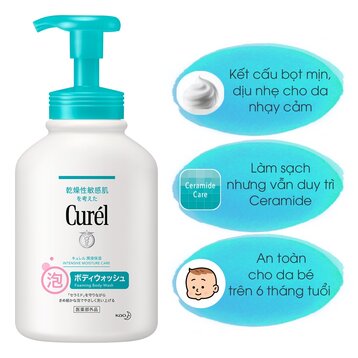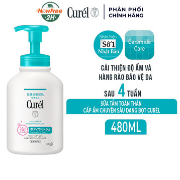 Sữa Tắm Toàn Thân Curél Cấp Ẩm Chuyên Sâu Dạng Bọt 480ml là dòng sữa tắm đến từ thương hiệu mỹ phẩm Curél thuộc tập đoàn Kao của Nhật Bản, thiết kế dạng tạo bọt sẵn tiện lợi với lớp bọt dày giúp làm sạch bụi bẩn, mồ hôi hiệu quả đồng thời vẫn duy trì Ceramide tự nhiên trên da. Sản phẩm rất an toàn và dịu nhẹ trên mọi làn da, kể cả da em bé trên 6 tháng tuổi.