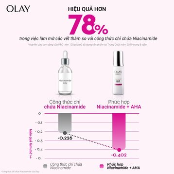 AHA (Lactic Acid) hoạt động trên bề mặt da trong khi Niacinamide thẩm thấu sâu 10 lớp, giải quyết triệt để gốc rễ của các vết thâm trên da.