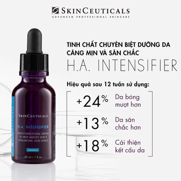 Skinceuticals H.A. Intensifier đến từ thương hiệu Dược Thẩm mỹ SkinCeuticals của Mỹ là tinh chất đa công dụng được điều chế với Hyaluronic Acid, Proxylane™, chiết xuất từ rễ cây cam thảo và gạo lứt. Sản phẩm giúp tăng cường hàm lượng Hyaluronic Acid trong da, hỗ trợ cấp ẩm cho bề mặt da, đồng thời tăng cường sự săn chắc, mềm mịn và bóng mượt của làn da. Sản phẩm có thể được sử dụng trong chu trình chăm sóc da tại nhà, hoặc sau các liệu trình tiêm fillers.