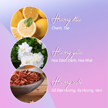 • Tầng hương giữa: Hoa hồng, hoa nhài, hoa lan Nam Phi